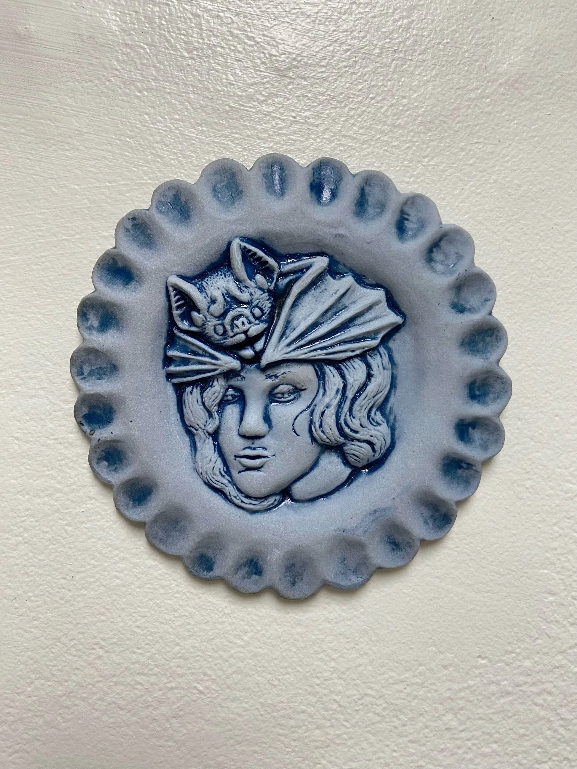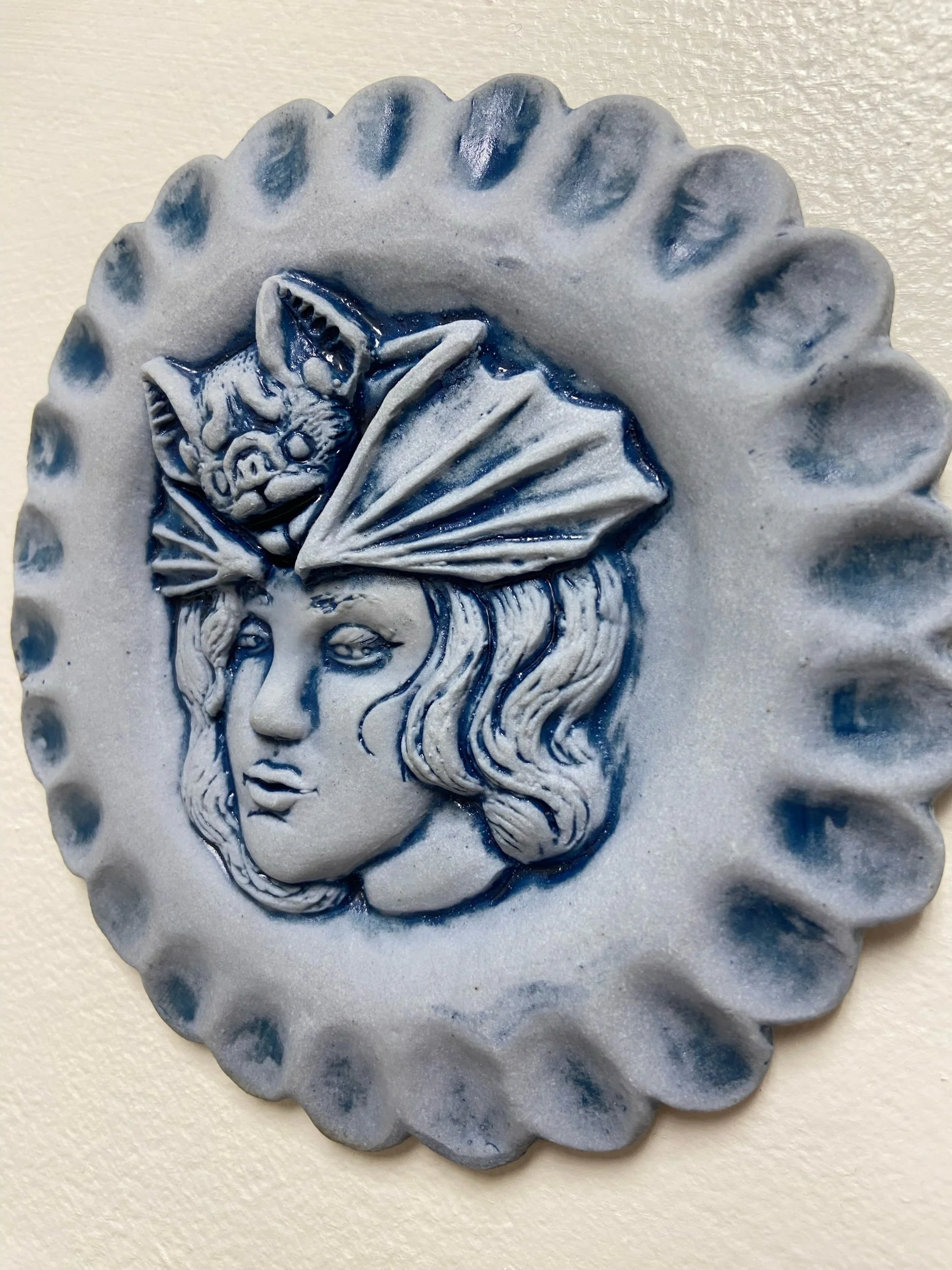 Store › Bats For Brains Lady 02 Image 1 of 2 Image 2 of 2 Bats For Brains Lady 02 $90.00 Cone 10 colored porcelain wall hangings.5” Dia. x 0.5”H Add To Cart Added! Cone 10 colored porcelain wall hangings.5” Dia. x 0.5”H