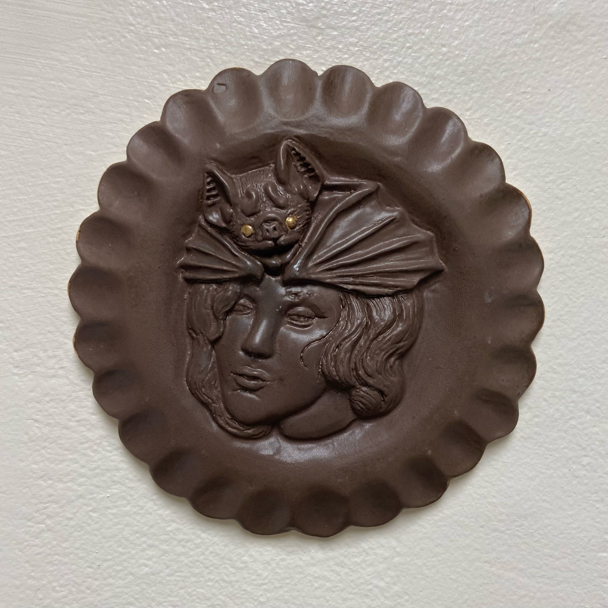Store › Bats For Brains Lady 10 Image 1 of 1 Bats For Brains Lady 10 $100.00 Cone 10 Porcelain wall hangings with gold luster bat eyes.5” Dia. x 0.5”H Add To Cart Added! Cone 10 Porcelain wall hangings with gold luster bat eyes.5” Dia. x 0.5”H