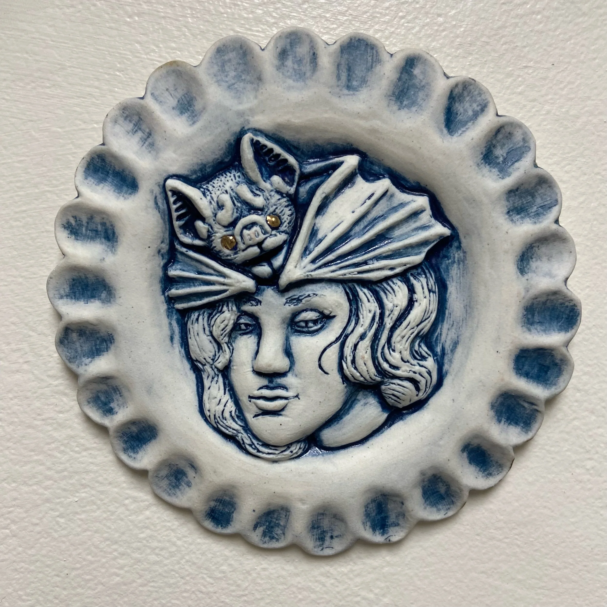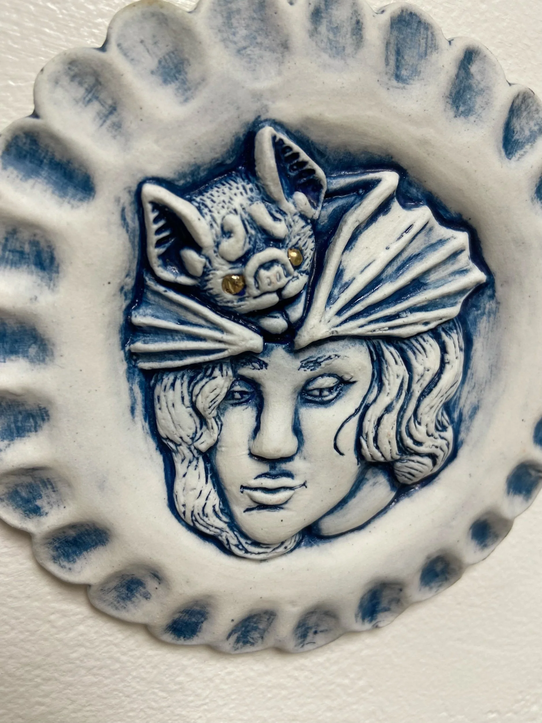 Store › Bats For Brains Lady 16 Image 1 of 2 Image 2 of 2 Bats For Brains Lady 16 $100.00 Cone 10 Porcelain wall hangings with gold luster bat eyes.5” Dia. x 0.5”H Add To Cart Added! Cone 10 Porcelain wall hangings with gold luster bat eyes.5” Dia. x 0.5”H