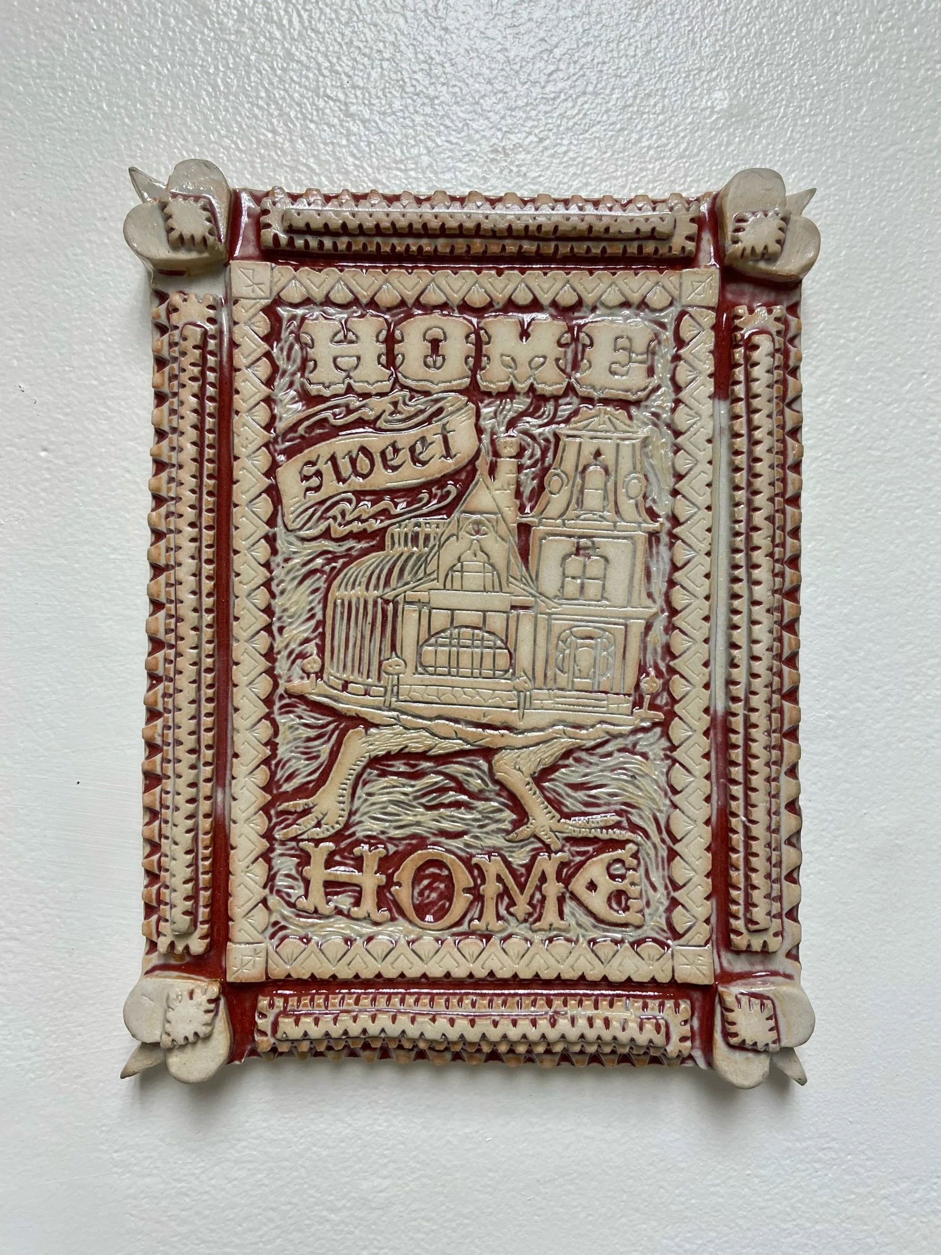 Home Sweet Home wall tiles depicting Baba Yaga’s house, a witch in Slavic folklore.
